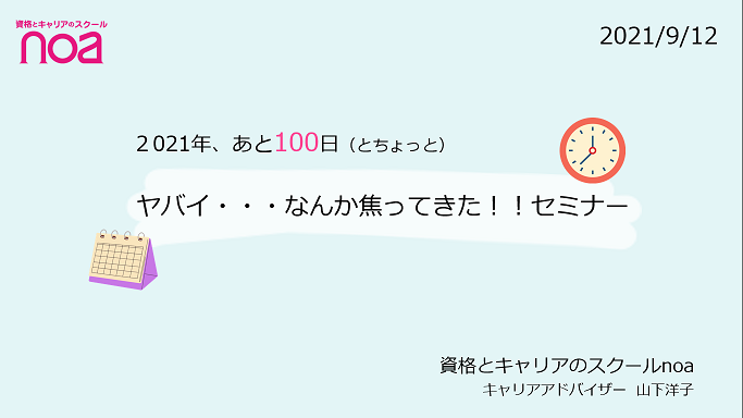 先日、「2021年もあと100日(とちょっと)ヤバイ!なんか焦ってきたセミナー」を
