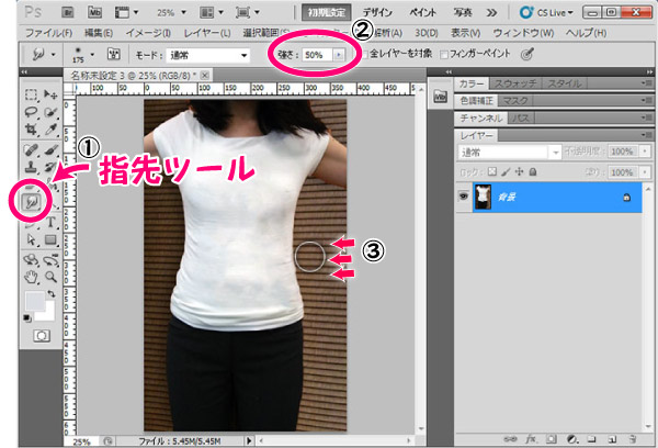 この「指先ツール」は、画像をまだ乾いていない絵のように扱い、